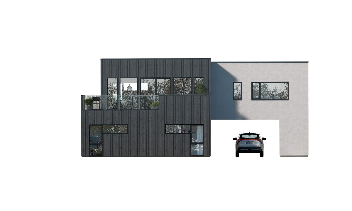 Slottsvik har et unikt design, med en kombinasjon av stående kledning og fasadeplater, og en karakteristisk bro over carporten. Her får du store vindusflater og gjennomtenkte detaljer, som gir boligen et eksklusivt og moderne preg.