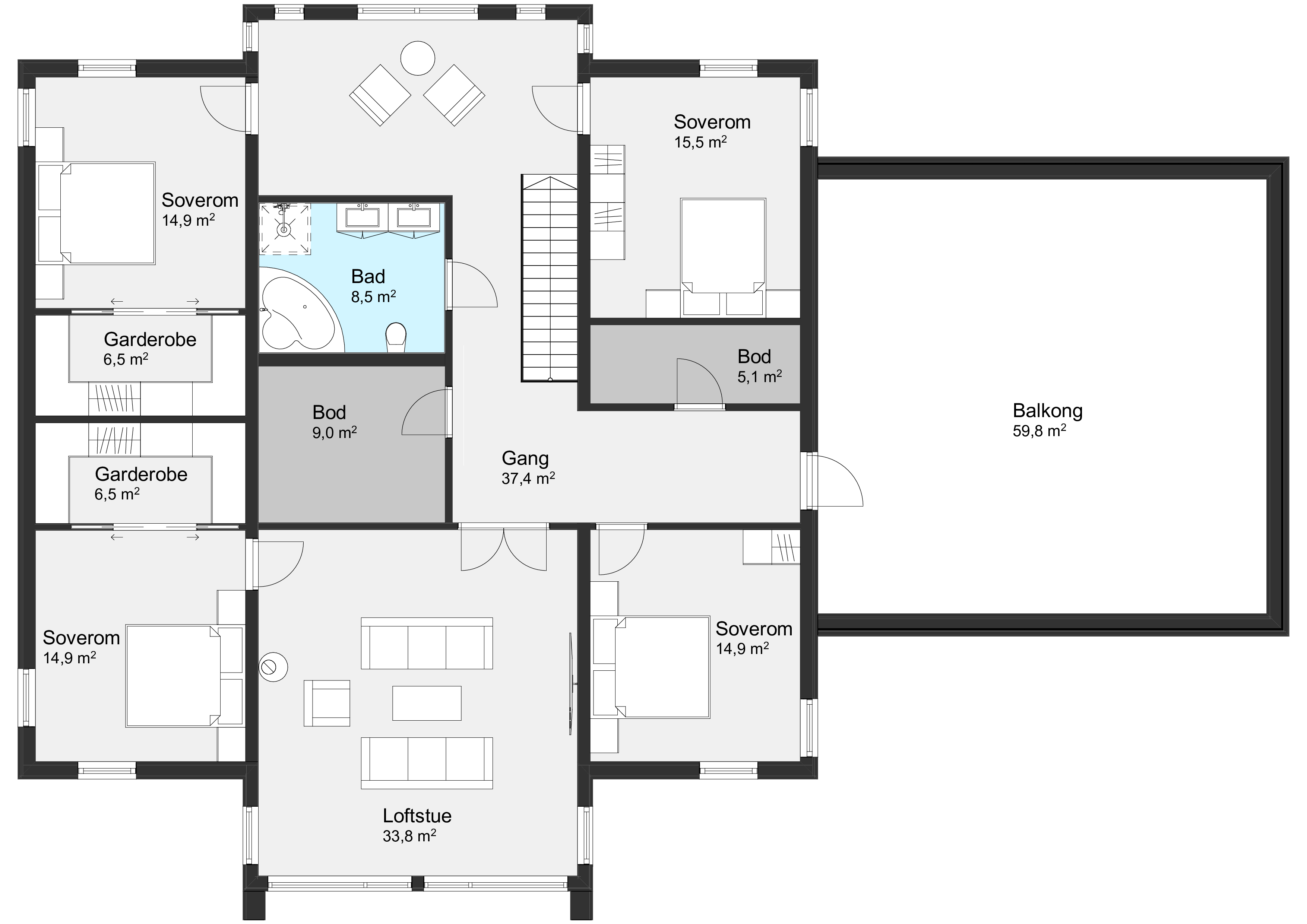 Med sine hele 403 m² har Amarante alt en familie kan ønske seg. Fem soverom, tre stuer i tillegg til en åpen stue- og kjøkkenløsning på 70 m², praktiske løsninger og gode oppbevaringsmuligheter, skaper et hjem med rikelig plass til både hverdag og fest, familieliv og rolige soner.
